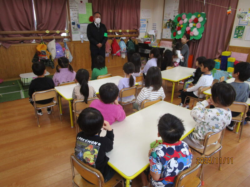 訓練が終わった後はらいおん組さんに向けて防犯教室もしていただきました。
