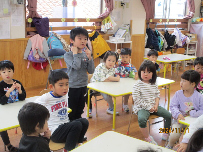 この間、保育園で不審者訓練がありました。実際に警察の方も来て下さり、先生たち、子どもたちの動きなどを見てもらいました。
