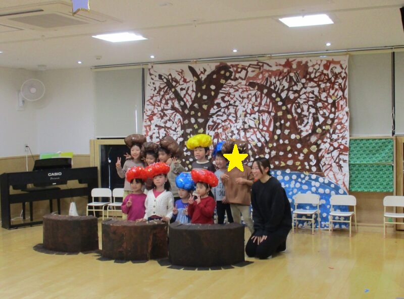 4歳 ひまわり組は「すてきなもりのひまわり」 劇あそび「てぶくろ」です。