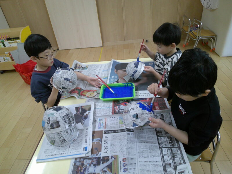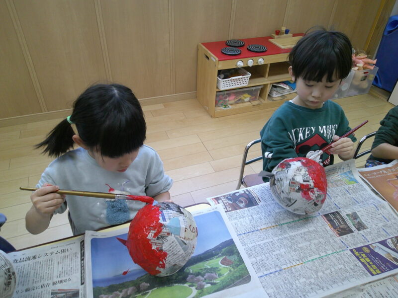 形は先生が作り、子ども達は色塗りからスタート。