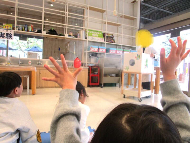 目に見えないけど私たちの身の回りにある空気、呼吸についての話を聞いたあと目で見てわかるようにドライアイスを使った空気砲を体験しました。
