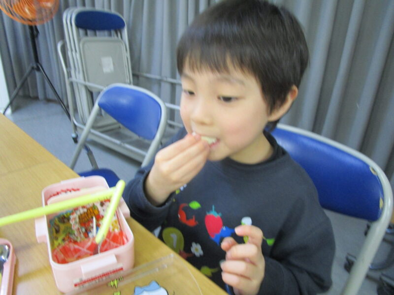 みんなでお弁当の中身は何か見せ合いっこしながら幸せそうに食べていました。