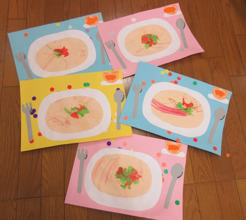 ランチョンマット製作は、3月に卒園するお友だちとのお別れ給食会で使用するものです😊