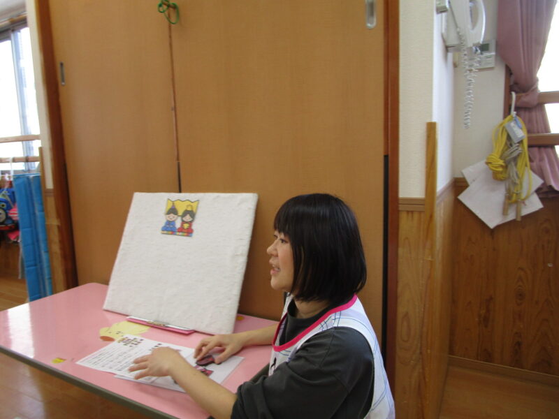 幼児クラスはパネルシアターを見ながらひな祭りにまつわるクイズを沢山しました!