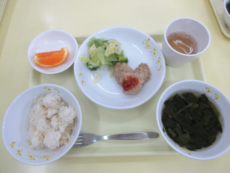 昨日、らいおん組が栄養士の先生に「リボンの形のハンバーグとかハートの形のハンバーグがいいな~!」と話したところ、なんと!!今日は栄養士の先生からのサプライズで4・5歳クラスのハンバーグがハート型でした!!