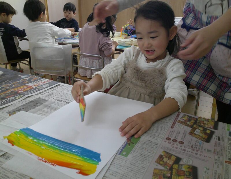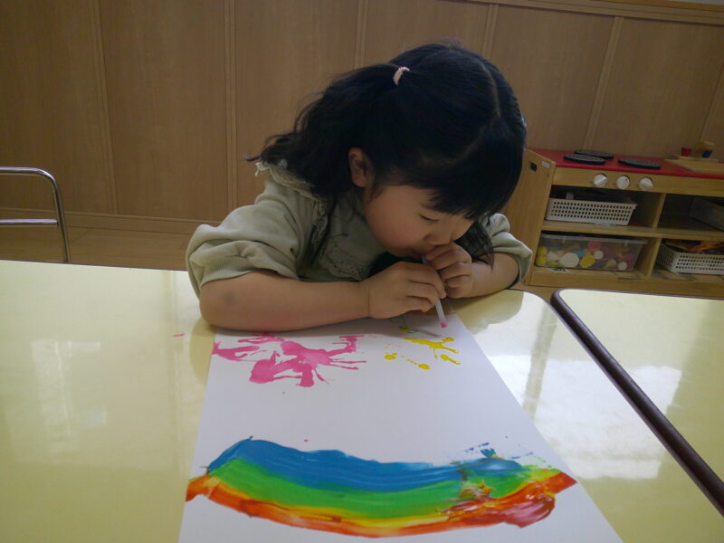 スワイプアートを行うのは2回目だったので、スラスラ綺麗な虹が出来上がっていました!