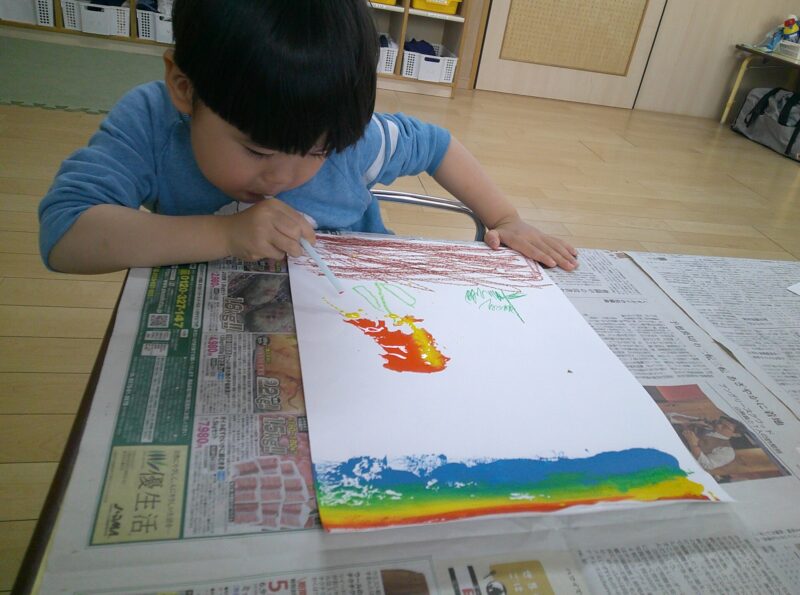 今回は吹き絵とスワイプアート、折り紙を折りました。