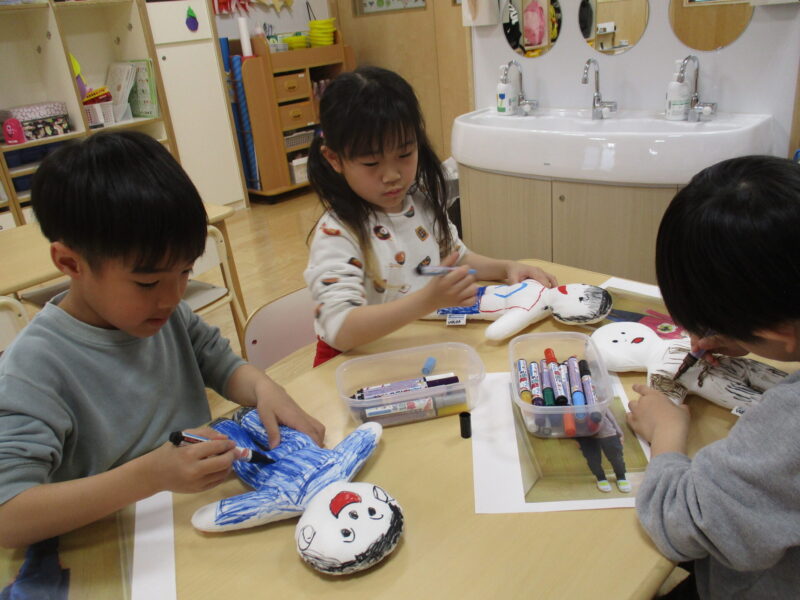 完成した人形は後日、プレゼントをしに他のクラスへ渡しに行きたいと思っています(^^)