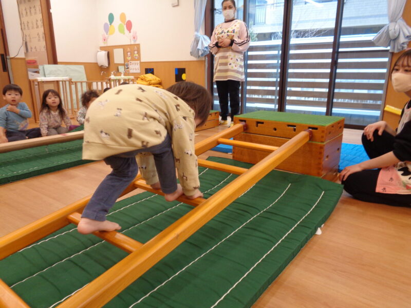 次は平均台です✨ 両手でバランスを取りながら慎重に…