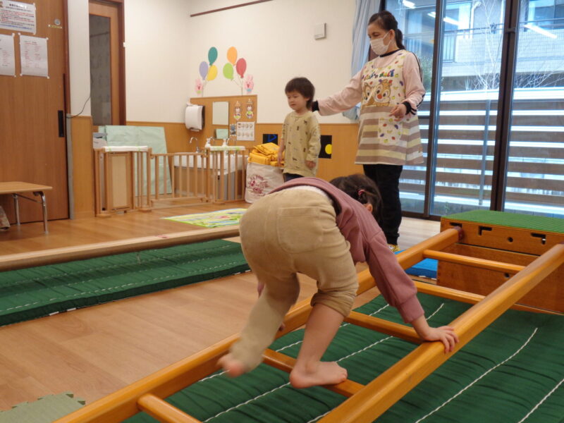そこで今回は、ばら組さんのお部屋を借りて少しレベルアップした運動遊びにチャレンジしてみました🏃🏻♂️➡️♩
