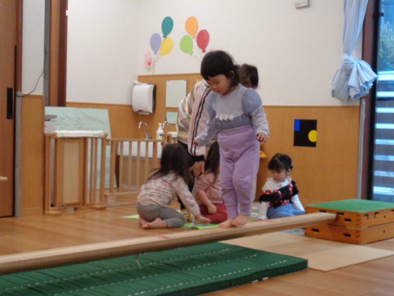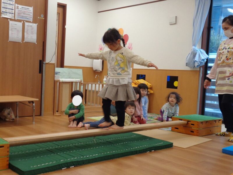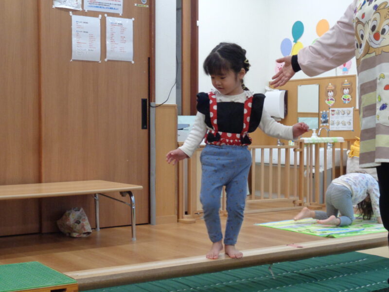次は平均台です✨ 両手でバランスを取りながら慎重に…