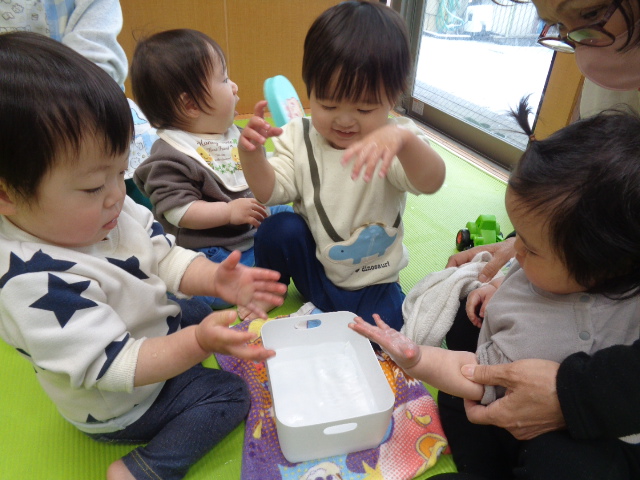最後は順番にお湯で手を温めて、雪遊びはおしまい☆楽しかったね!