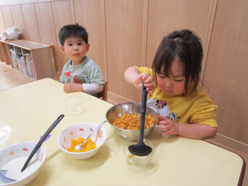 八広園【2歳児くも組】おやつを作ったよ♪