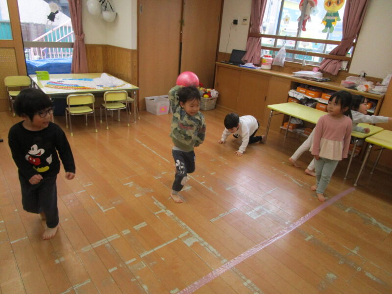 りんご組さんになってからもたくさん体を動かしていろんな遊びをしようねー!