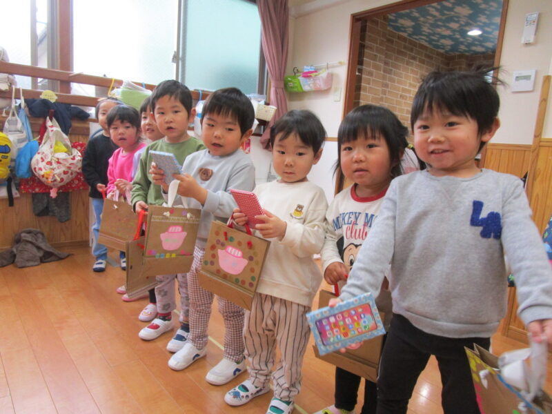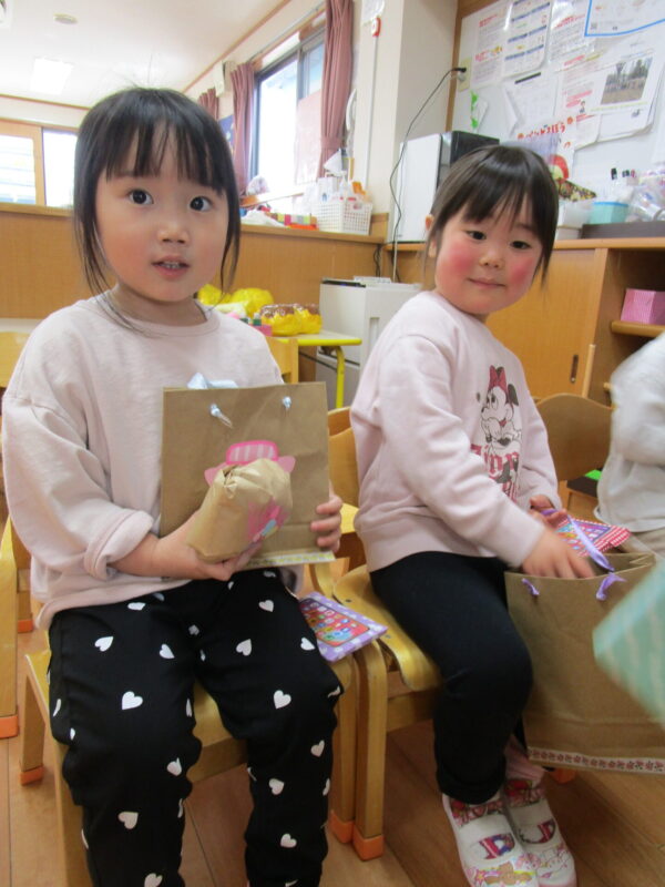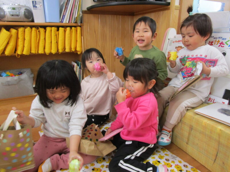 何度も読み返していた大好きな絵本だったのでセリフはバッチリな子が多く、お客さんできてくれた年少さんにセリフを教えてあげる姿も見られました。
