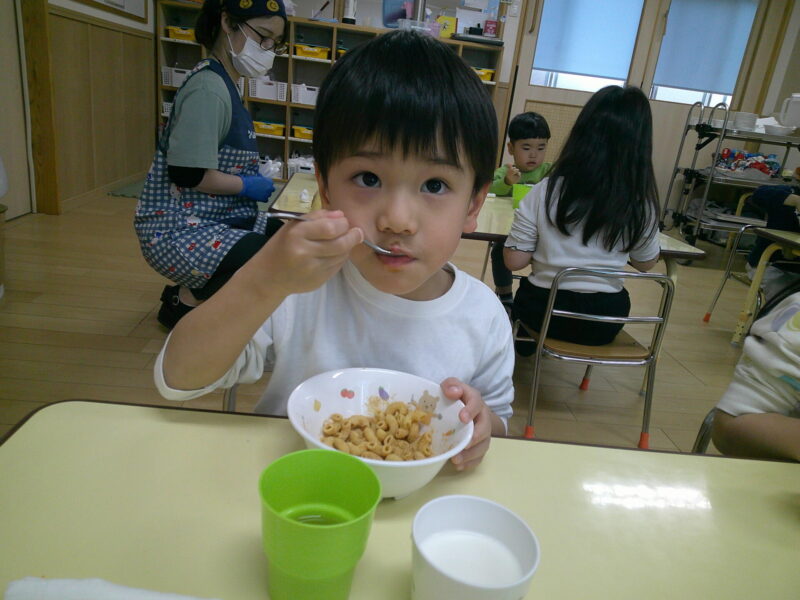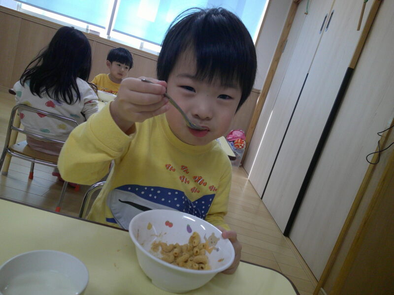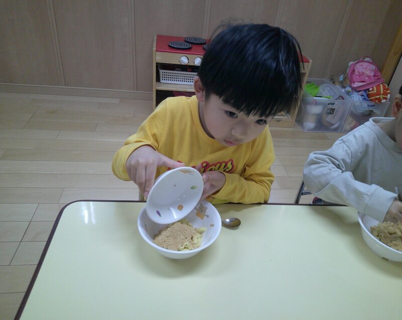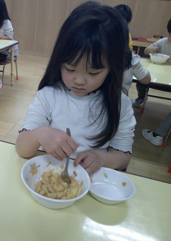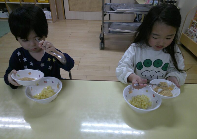 八広園【3歳児ほし組】ほし組最後の食育~きなこマカロニ~