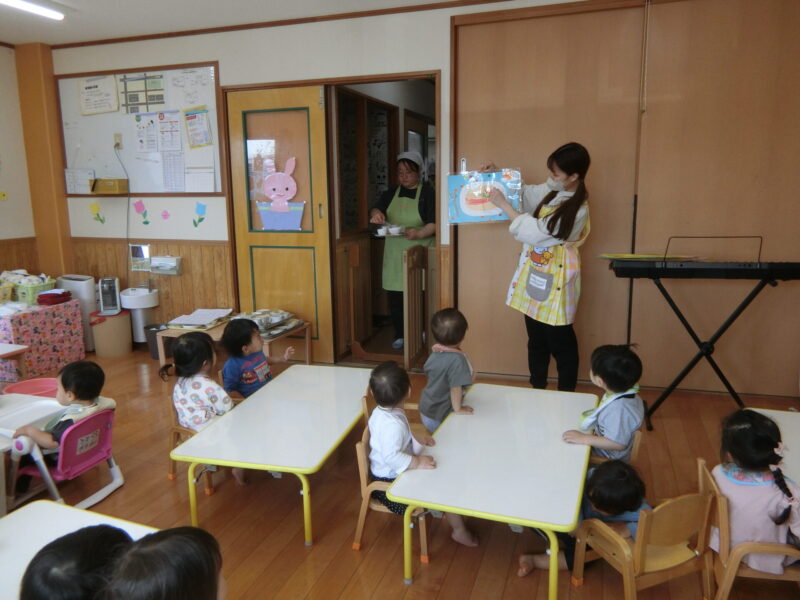 「お給食はみんなで一緒に食べるんだよね!」「ひよこさんもうさぎさんもいるの~?🤭」と待ちきれない様子でした💕
