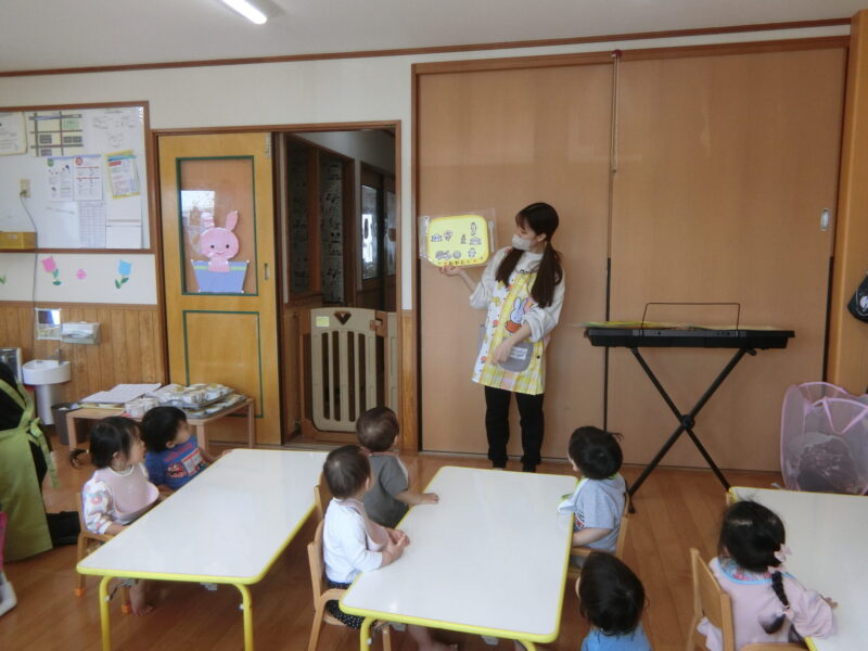 みんなで手遊びを楽しんだ後は”ランチョンマット”の紹介👀