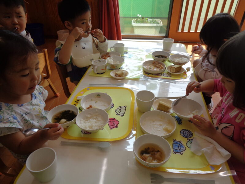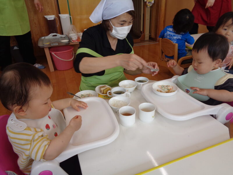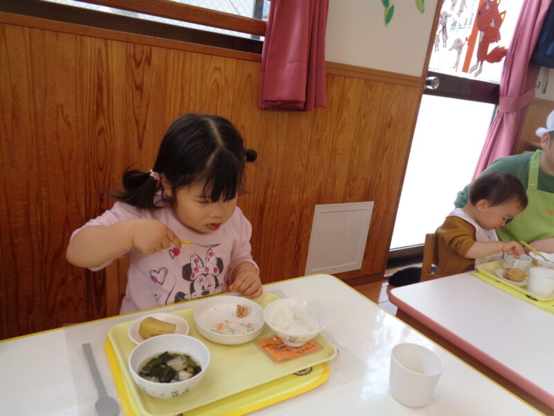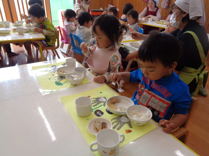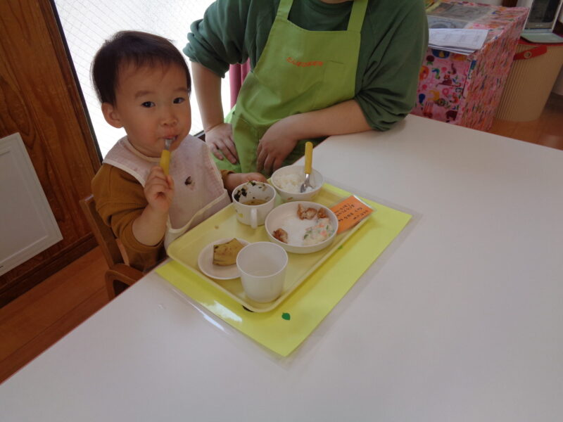 お散歩から帰ってきたらいよいよお給食の時間です🕐