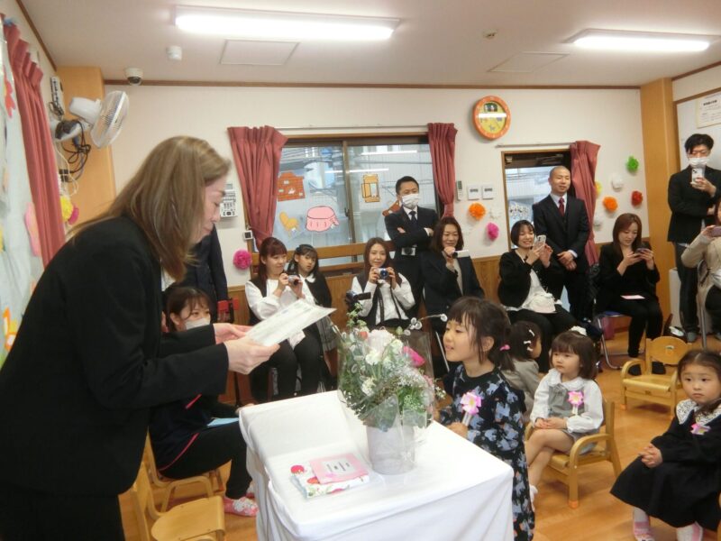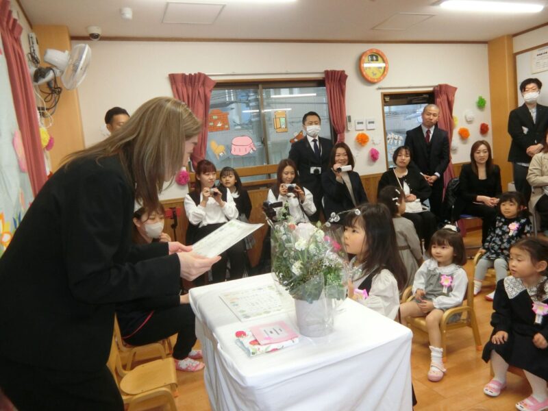 ドキドキしながら、一人ひとり園長先生から卒園証書をもらいます💓