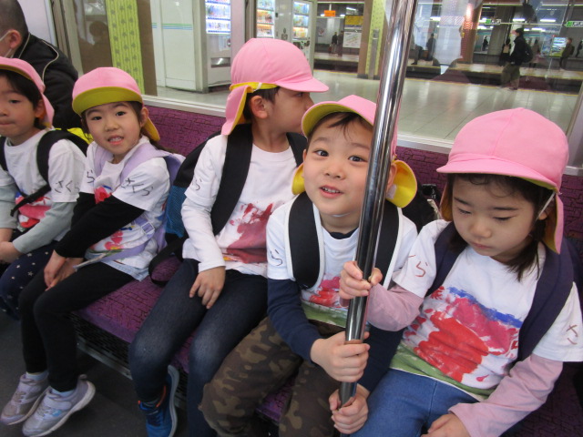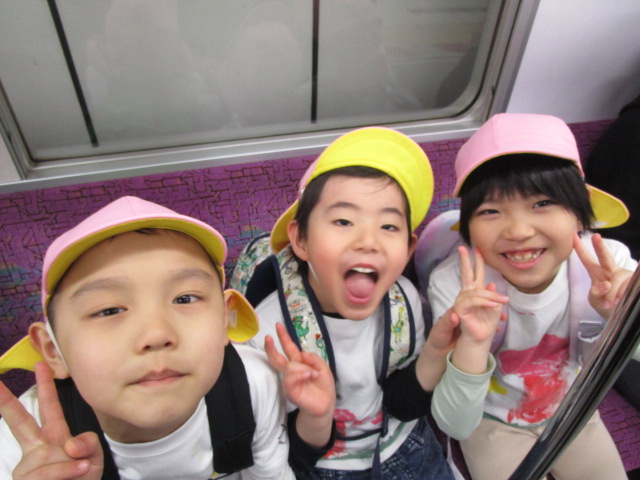 初めて電車を使用しての遠足に期待が膨らむ子どもたち。