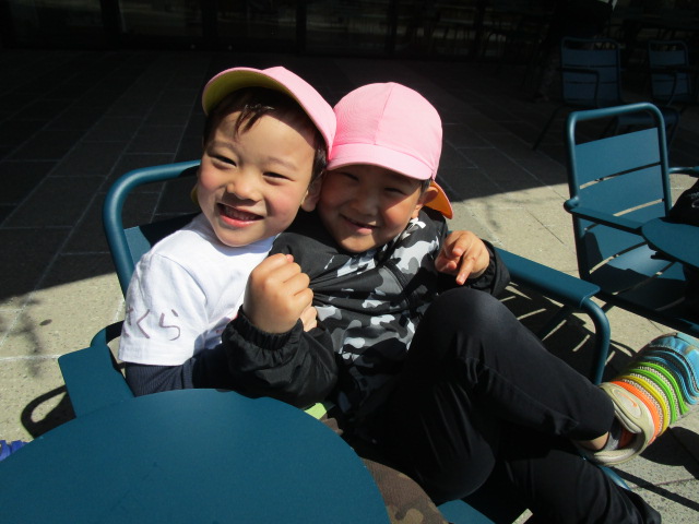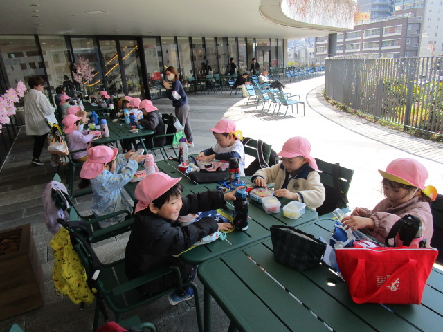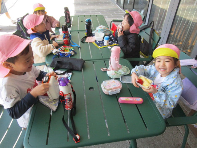 天気が良かった為、戸外でテラス席で仲良くお弁当を食べました🎵