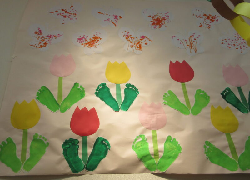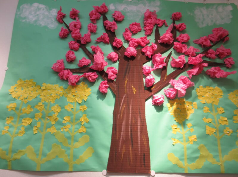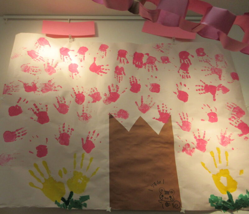 本日より新年度が始まりました。外は冷たい雨が降っていましたが、保育園の中は温かい雰囲気でいっぱいです。みんなの共同製作が入園と進級をお祝いしてくれました。
