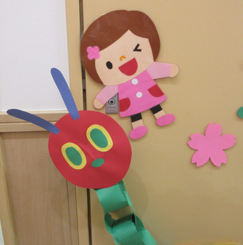 あおむしの顔まで続いていました。この輪っかも子どもたちが作りました。