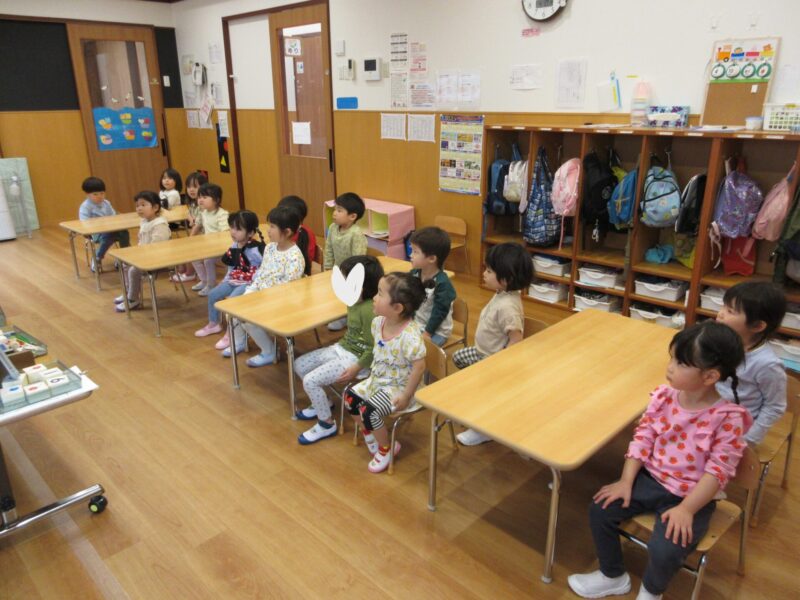 初めての学研で少し緊張気味のゆり組さん。