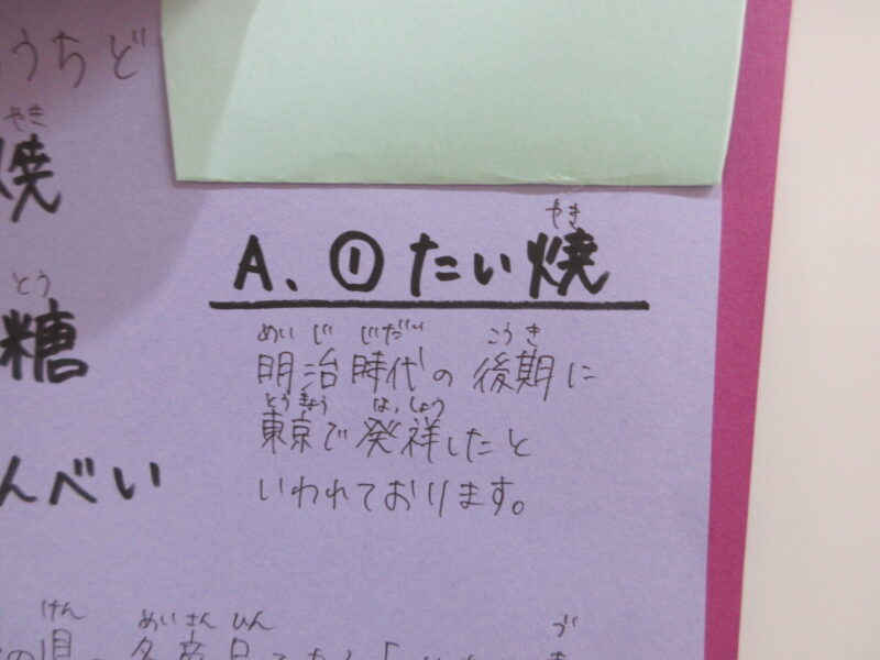 たい焼きです!子ども達に話をしたら「知らなかった~!!食べたことあるよ~」という答えが返ってきました。