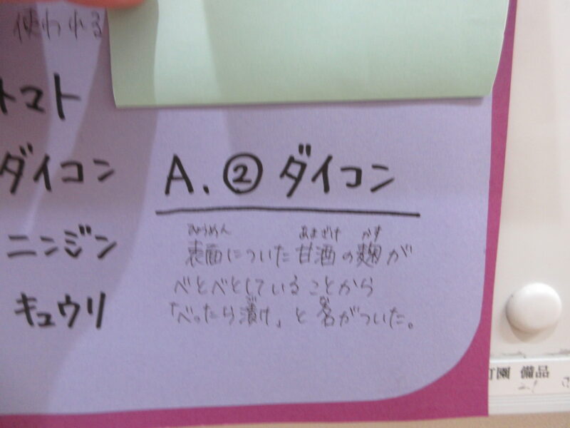 べったら漬けが東京の名産品だったことを教えてもらえました。
