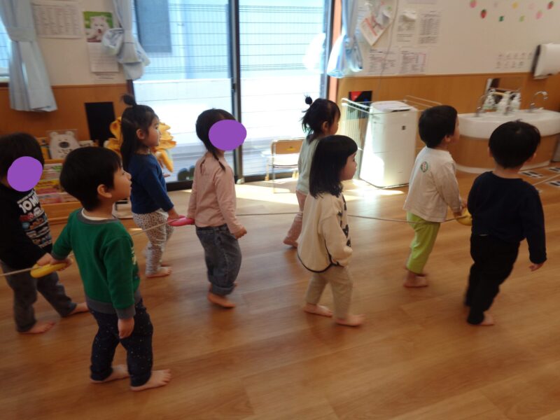 お散歩ロープに挑戦しています😊 ~西新井南園・すみれ組~