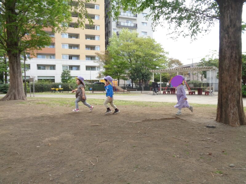 公園内では元気いっぱい走り回っているすみれ組さんです😊💛