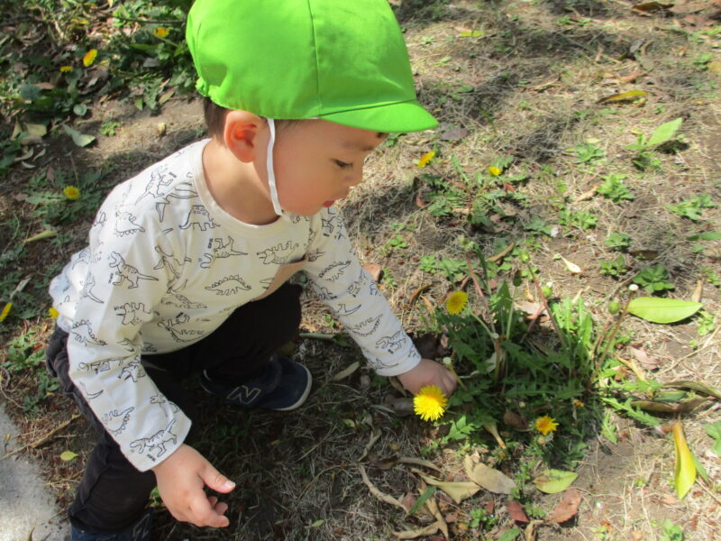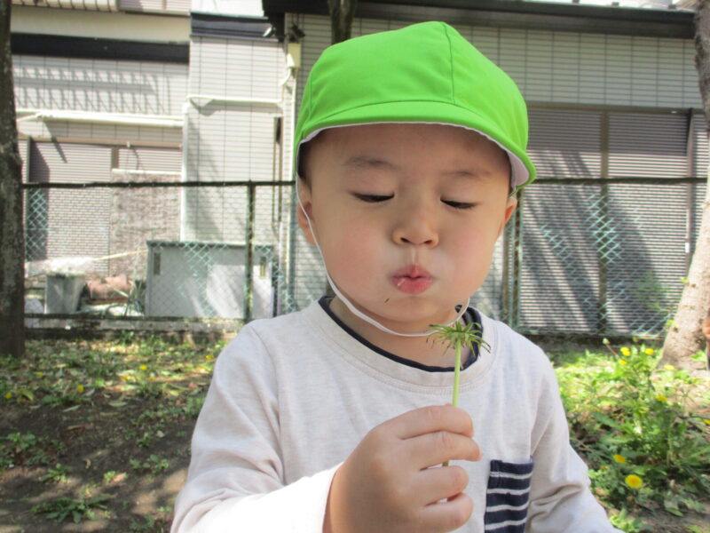 中には綿毛がついているたんぽぽもあり、息をふぅ~と吹きかけて