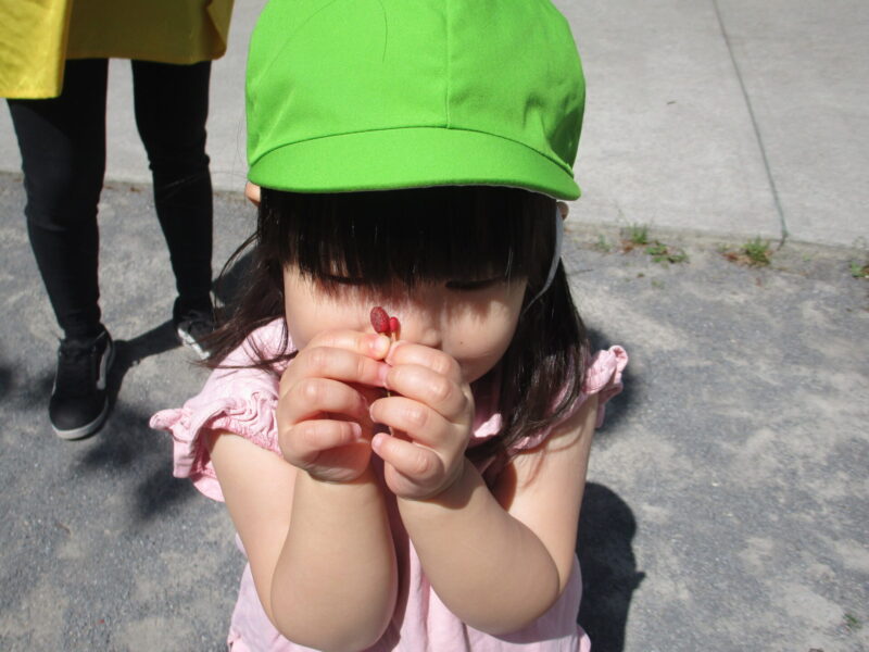 でも「触ってみる!!」と手の平に乗せてみる子もいました。