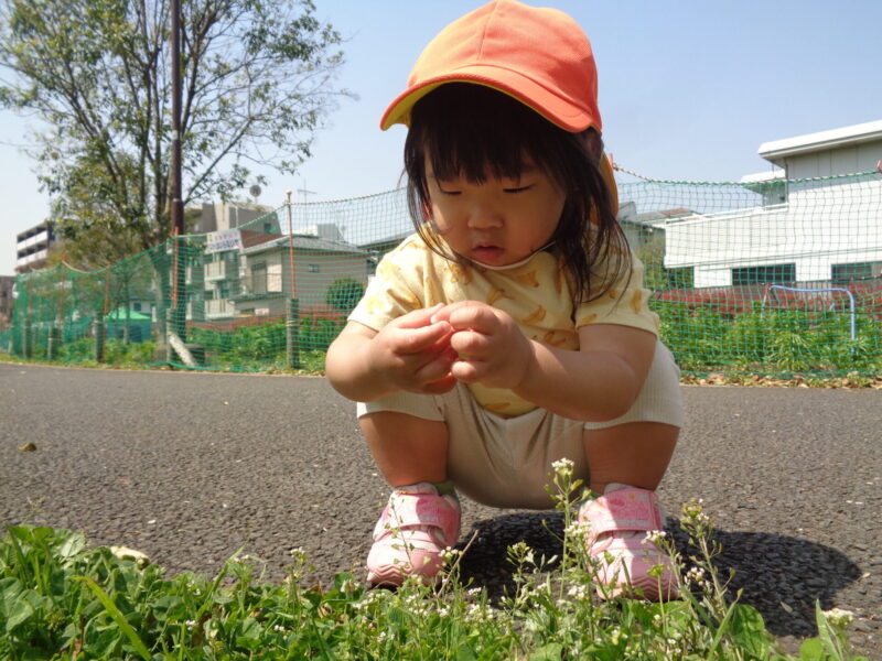 天気がいい日はお散歩に出掛け、春の花を見つけて「かわいいね」「きれいだね」とお話ししているお友だちもいました!