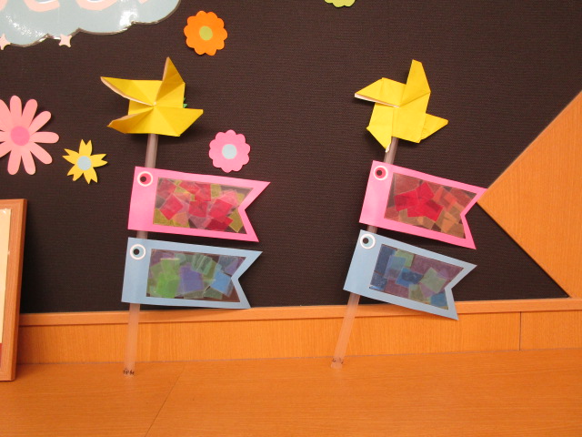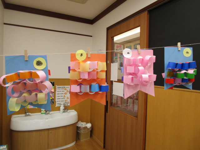 そして、各クラスを覗いてみると子ども達が制作した個性豊かなこいのぼりが元気に泳いでいます🎏