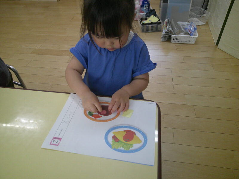 同じ型を探して見つけたり、数字やひらがなも少しずつ学んでいきます。