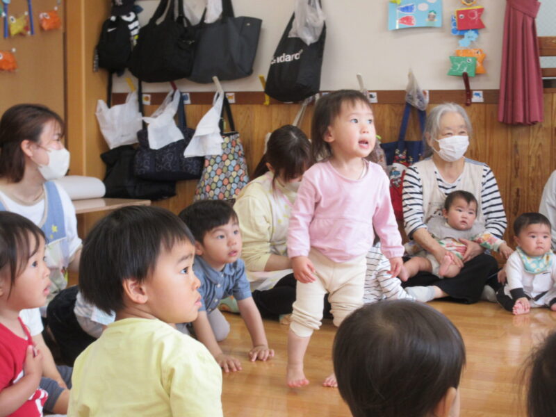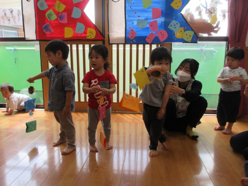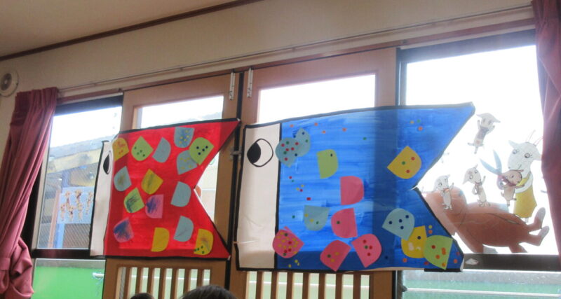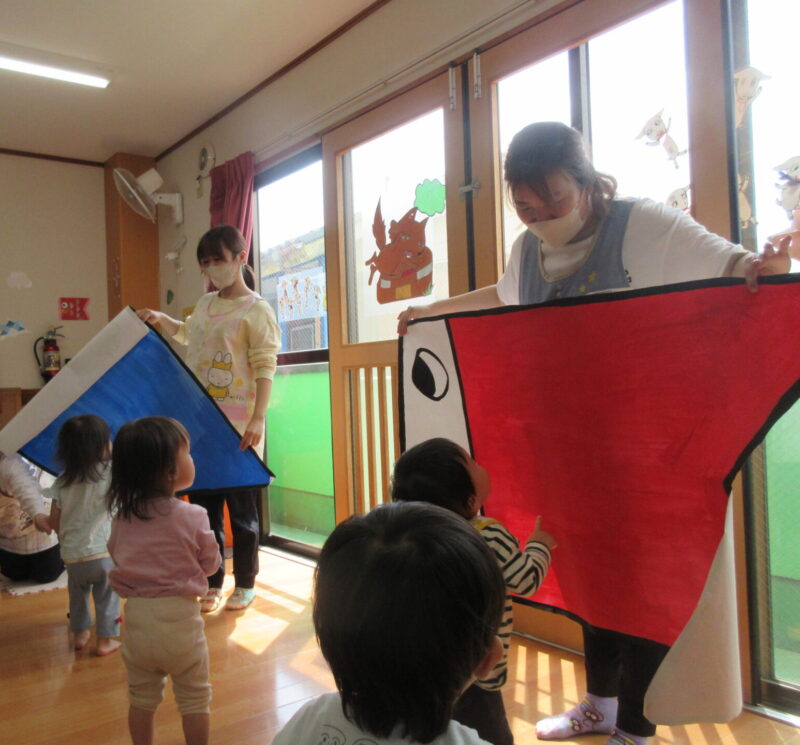 「これな~んだ!」とこいのぼりのイラストを出すと、「こいのぼり!」と元気な声が聞こえました🎵