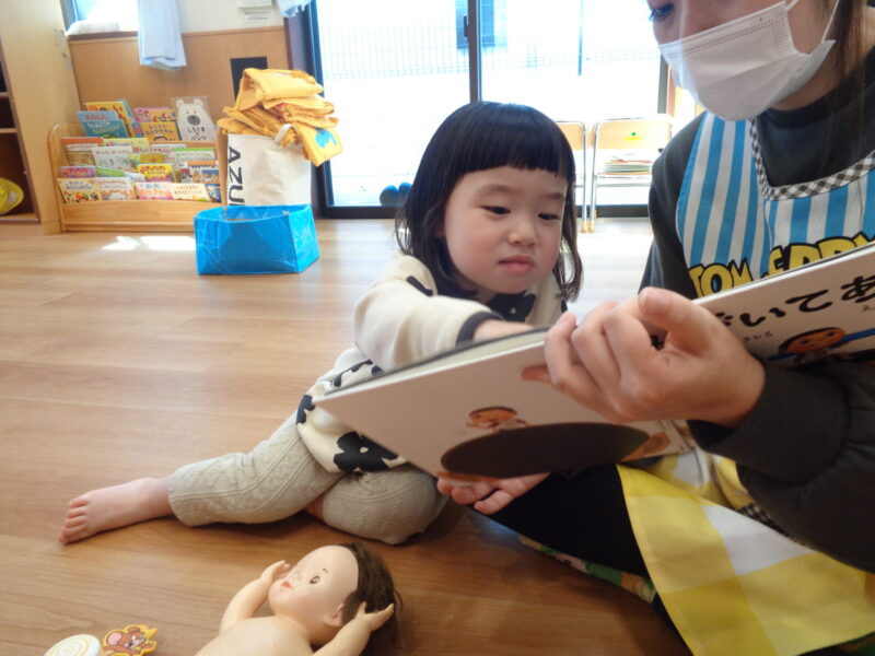 「これは何色の鯉のぼりかな?」の質問に、「あお!」「あか!」と元気に答えてくれました!