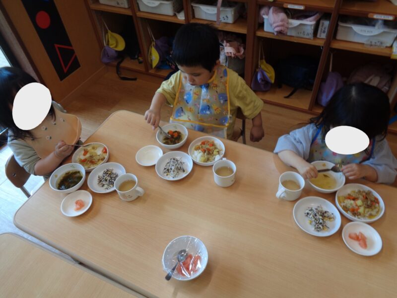 お給食も大好きなお友達と楽しく食べています😊🎵