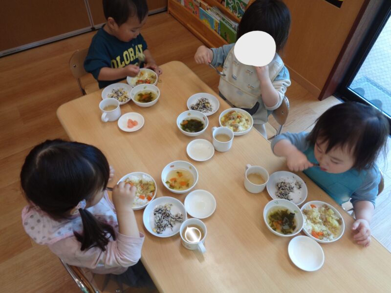 お給食も大好きなお友達と楽しく食べています😊🎵
