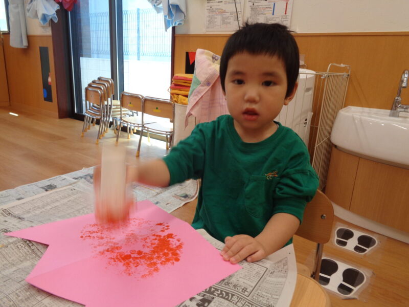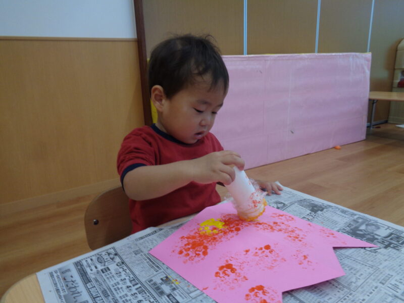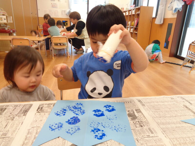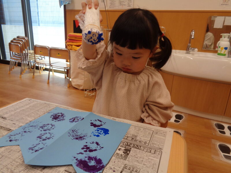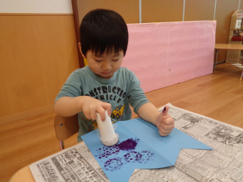 真剣に絵の具をそーっとつけて、「ポンポン!」と言いながら上手に制作をすることが出来ましたよ✨