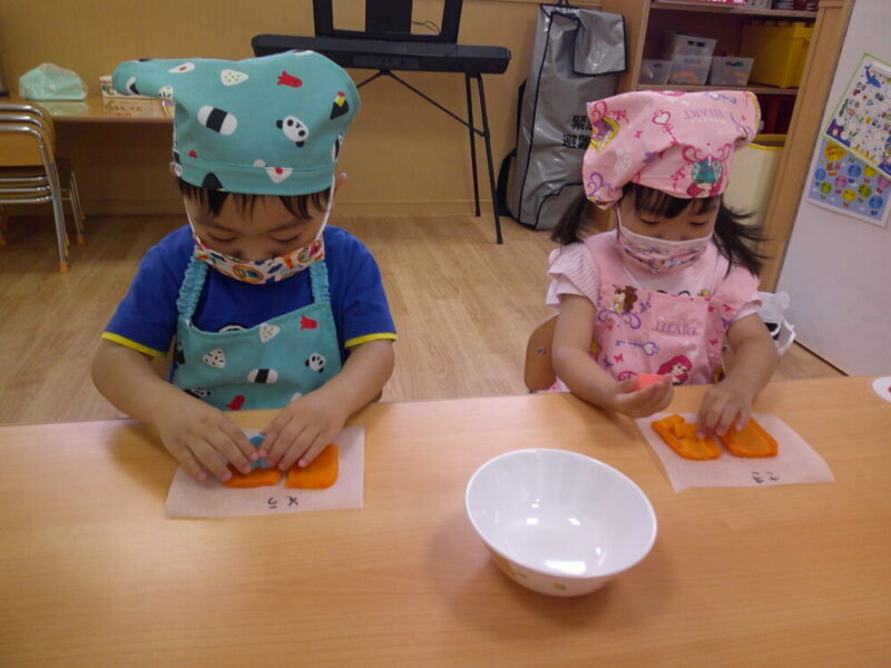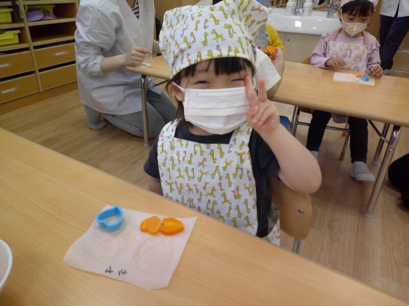 次は、ニンジンの型抜きをしました🥕型は事前に子どもたちに好きな形を選んでもらいました!