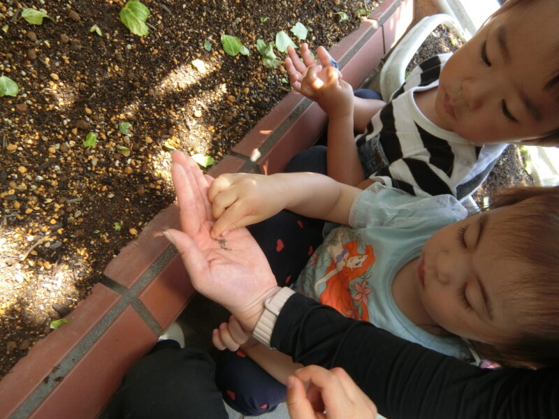 子どもたちは外遊びを楽しみ、蝶々や蟻を追いかけて手を振ったり、たんぽぽやシロツメクサ、つつじなど春ならではの植物を観察して楽しんでいます🎵