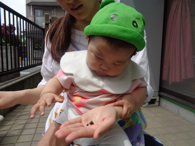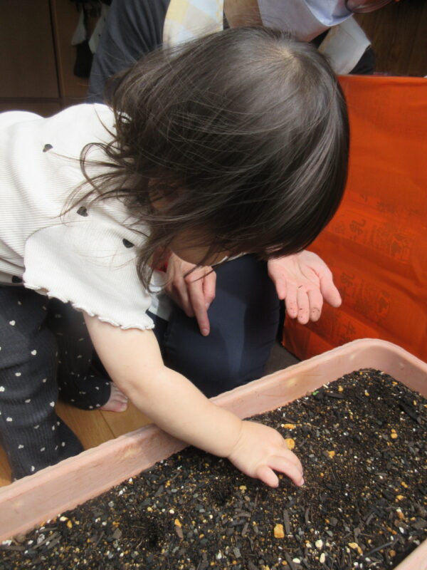保育士と一緒に初めての種まきが出来ました♪