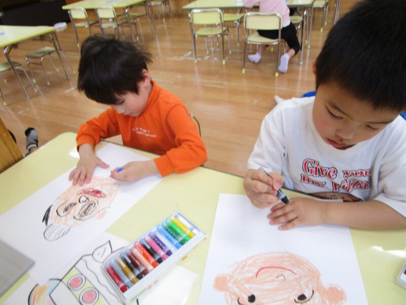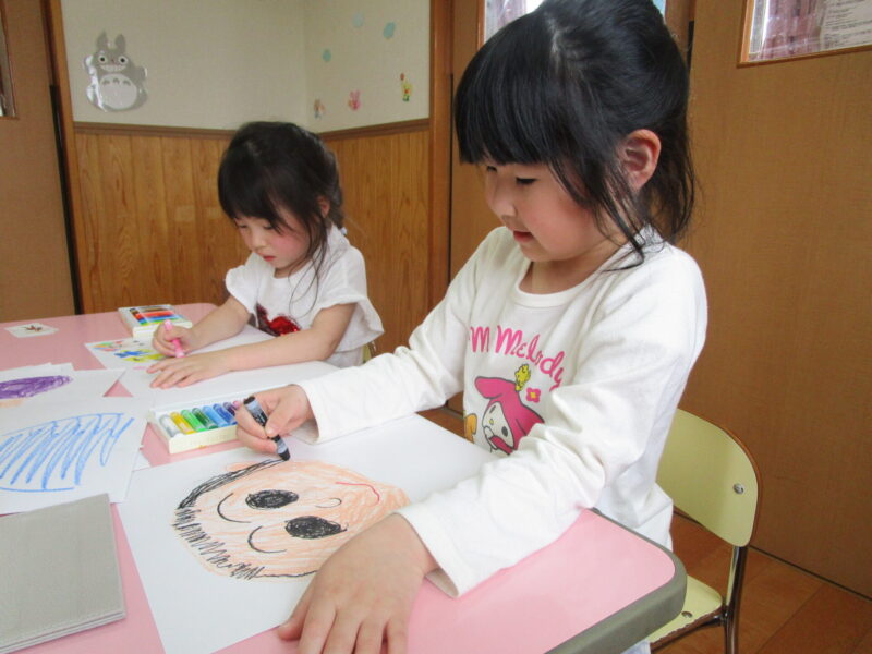 ↑自分の顔をにらめっこをしていたので、楽しそうに描いていましたよ。