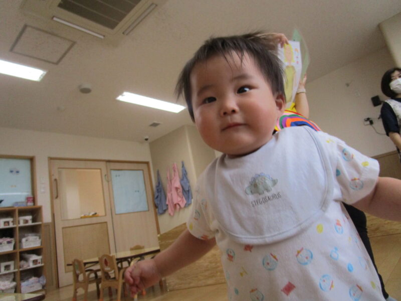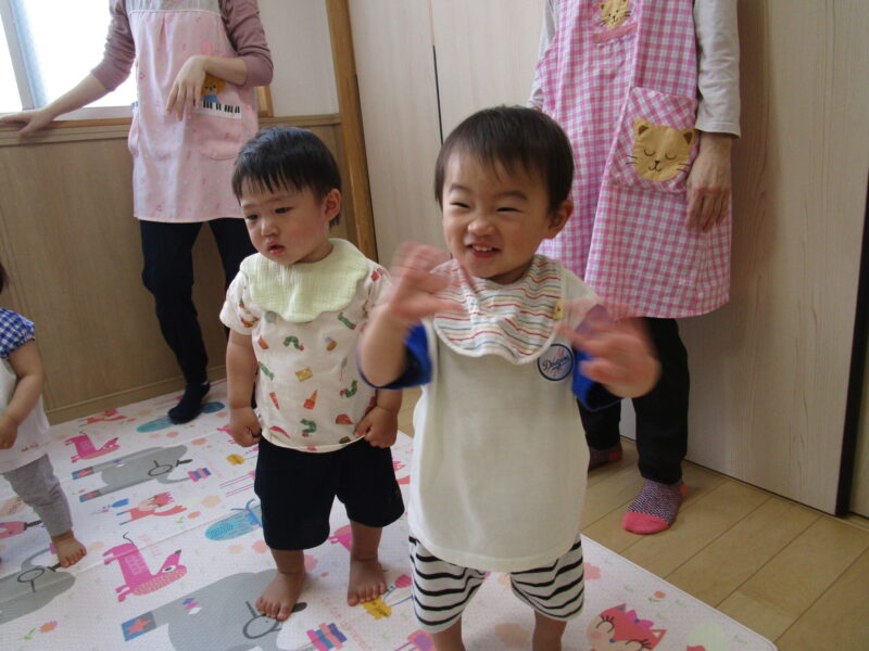 英語の歌が始まると、動きを真似ようと真剣な表情も見られます。