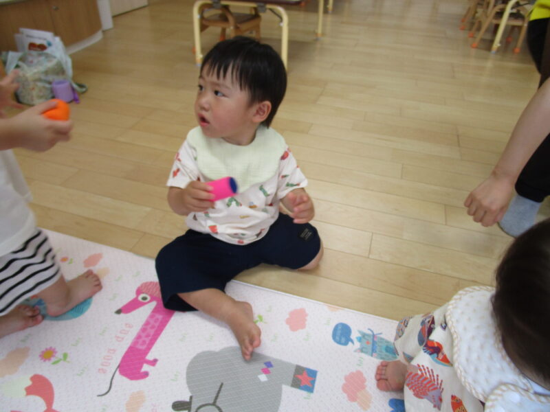 講師からマラカスを貰い、一生懸命振って音を出していました。