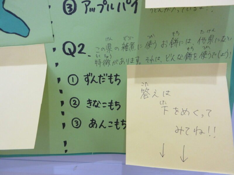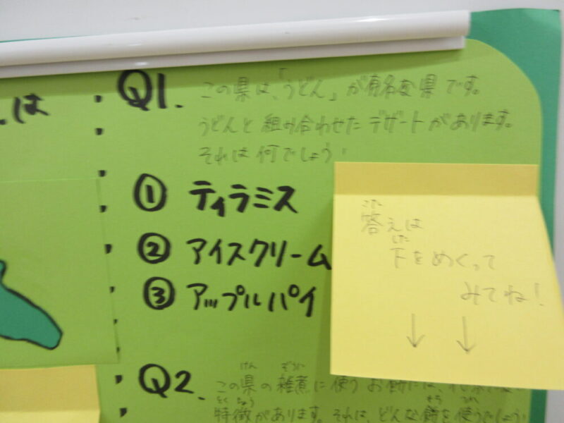 香川県にまつわるクイズを栄養士の先生が毎月作ってくれますが、これも大人気のクイズです。
